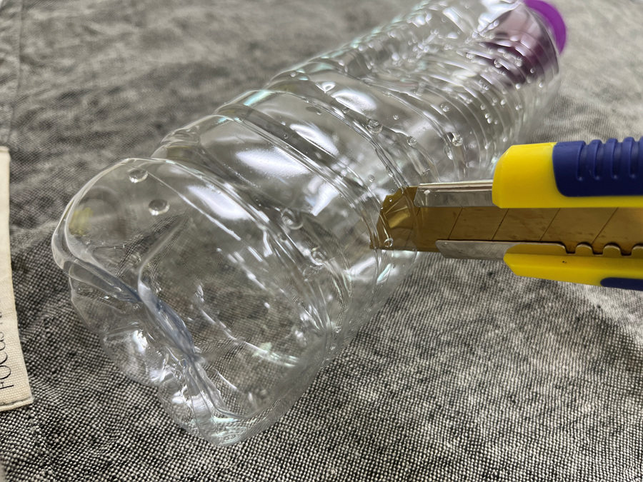 - 페트병의 바닥 부분을 잘라냅니다. 이때 너무 많이 자르지 않도록 주의합니다.